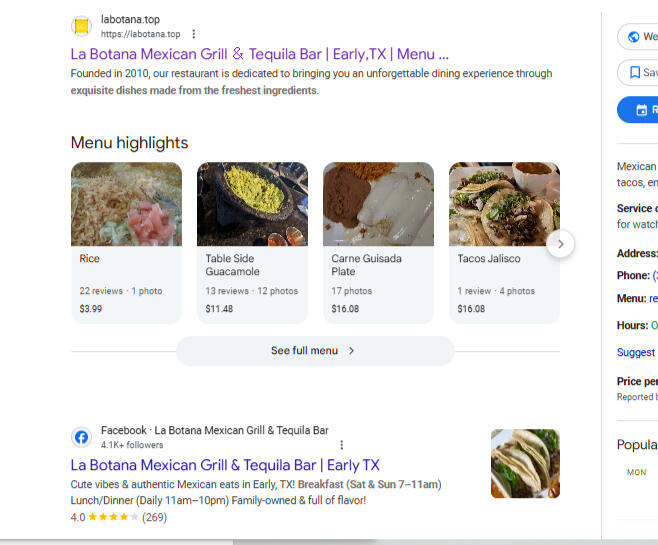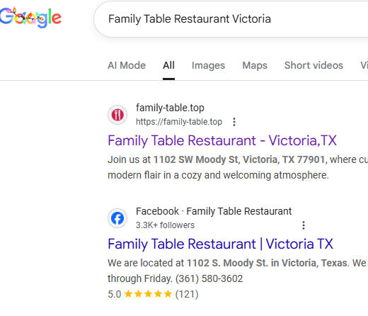 This example demonstrates how the fake website can rank higher on a Google search than the restaurant's Facebook page.This can be confusing to potential customers and potentially dangerous for the site visitor.